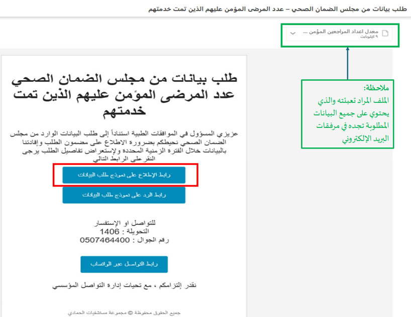 بعد استكمال تعبئة البيانات، يعود المسؤول إلى البريد الذي يحتوي على إشعار الطلب، وينقر على رابط الرد على نموذج طلب البيانات لتقديم الرد الرسمي وإرفاق أي مستندات داعمة.